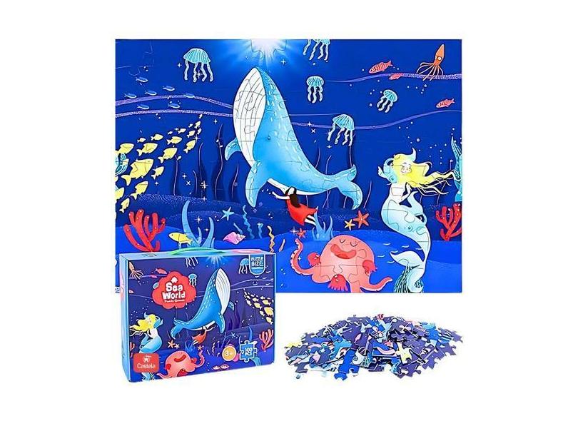 Quebra Cabeça de 100 Peças Fundo do Mar Infantil Aprendendo Pré Escola