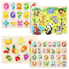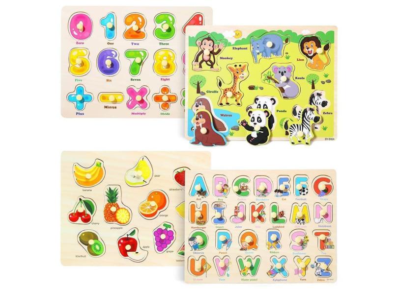 Quebra-cabeça de madeira GRINNNIE para crianças de 2 a 4 anos com 4 quebra-cabeças