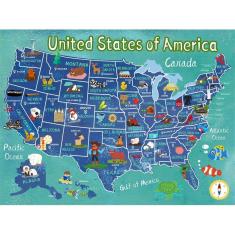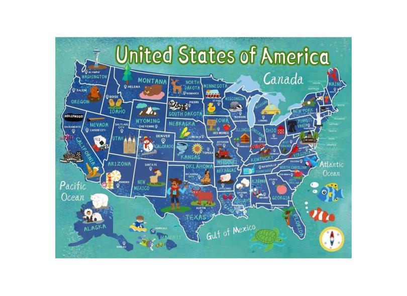 Quebra-cabeça de Madeira Mapa EUA para Crianças de 4-8 anos - Aprendizagem Geográfica com 60 Peças