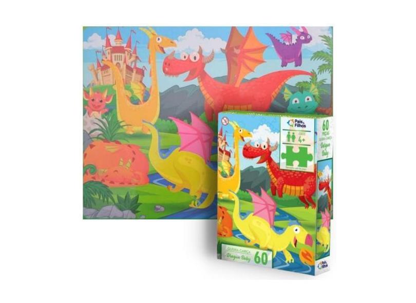 Quebra-Cabeça Dragões Dinossauros Dragon Baby Infantil 60Pçs - Pais E