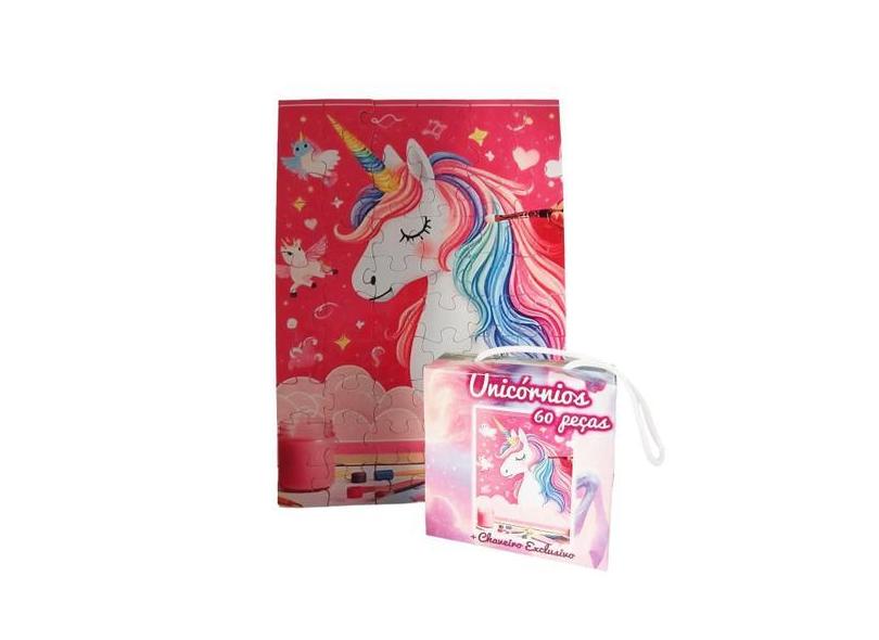 Quebra-Cabeça Unicórnio Colorido 60 Peças + Chaveiro - Reidopendrive