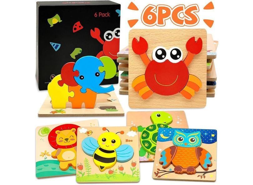 O menor preço encontrado no Brasil para Quebra-cabeças de madeira para crianças pequenas | Brinquedo Montessori de 1 a 3 anos | Pacote com 6 atualmente é R$ 361,14.