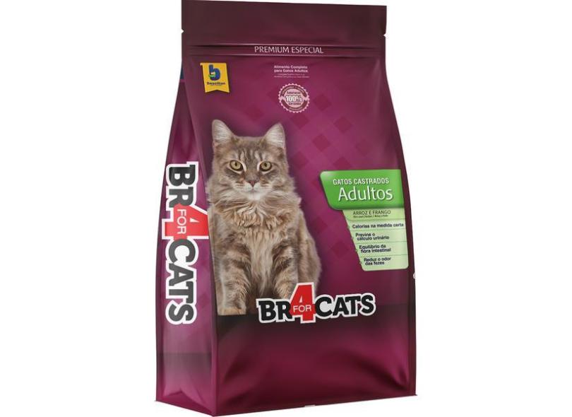 Ração Seca BR4 Cats Arroz e Frango para Gatos Castrados - 3 Kg
