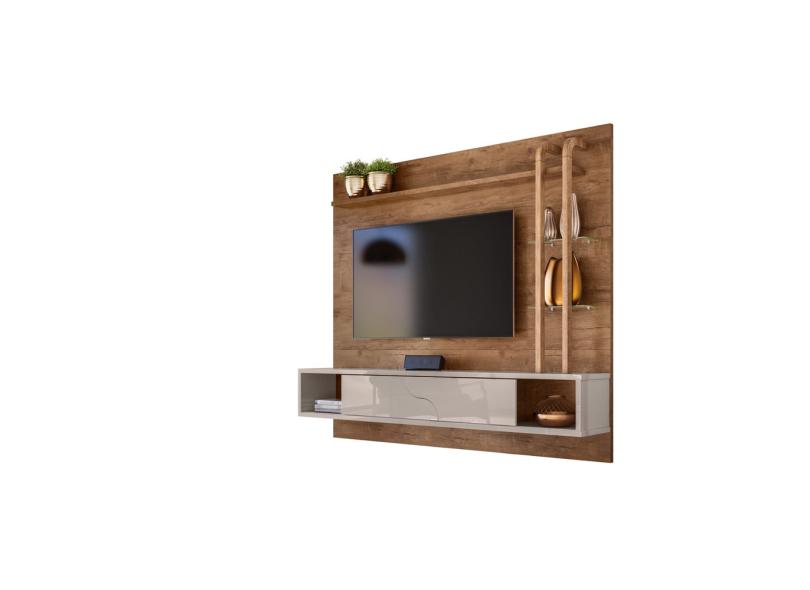 Painel para sala apartamento com porta de correr moderno luxo TV 60 polegadas madero canela com off white