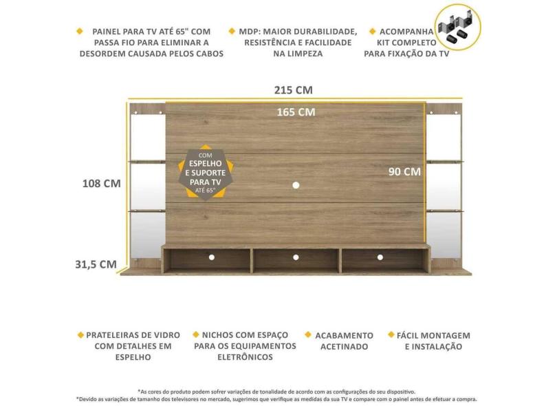 Painel TV 65'' Suporte Espelho e Prateleiras de Vidro