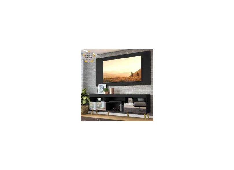 Rack c/ Painel e Suporte P/TV 65" c/ Espelho e Pés Retrô Flórida Multimóveis /Natural