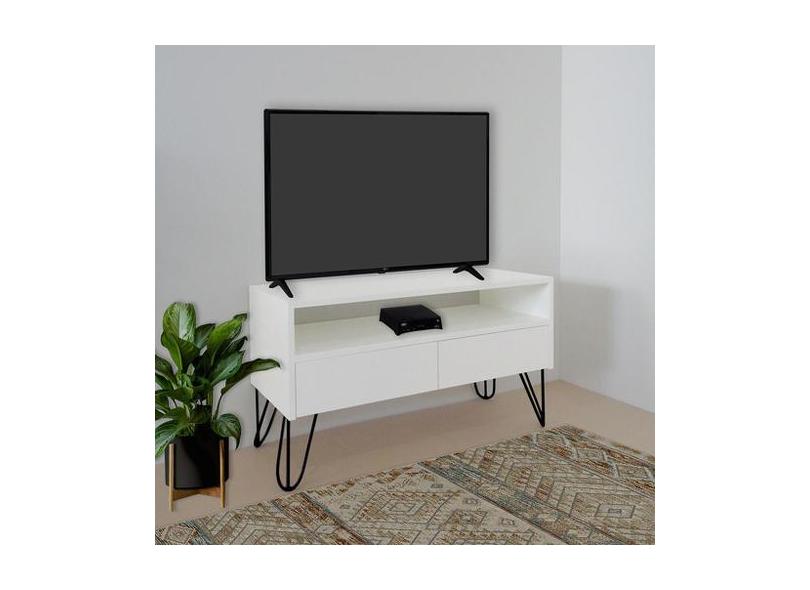 O menor preço encontrado no Brasil para Rack para TV Bancada Com Nicho e Gaveta Pés Hairpin Legs Estilo Indust atualmente é R$ 989,52.