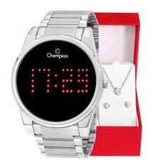Kit Relógio Feminino Champion Digital Prata CH40053T Colar e Brincos