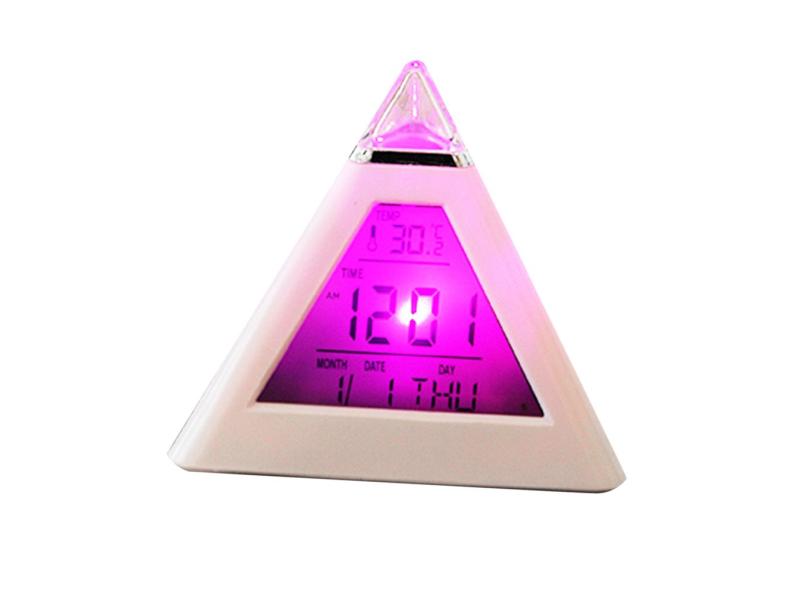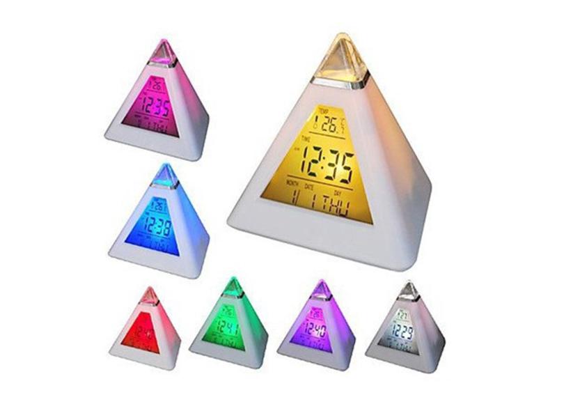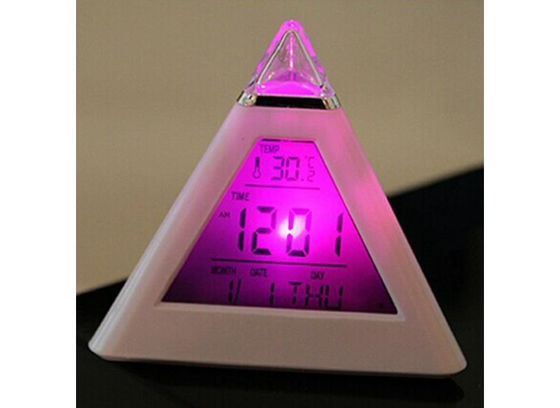 Relógio criativo de temperatura da pirâmide 7 cores LED Mudança retroiluminação despertador