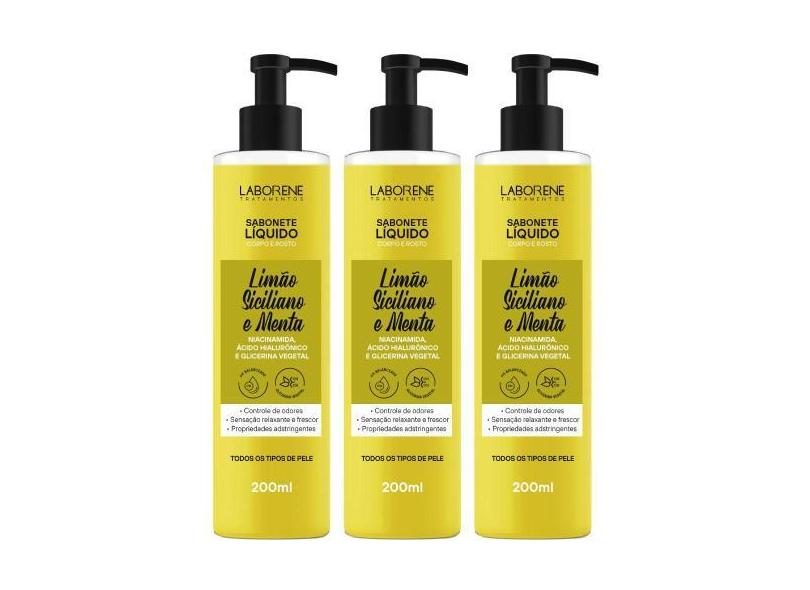 O menor preço encontrado no Brasil para 03 Sabonete Líquido Limão Siciliano e Menta Laborene 200ml atualmente é R$ 59,90.