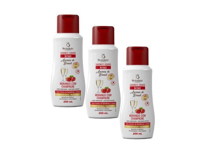 O menor preço encontrado no Brasil para Kit 3 Sabonete Íntimo Morango Champagne 200ml - Bio Instinto atualmente é R$ 22,85.
