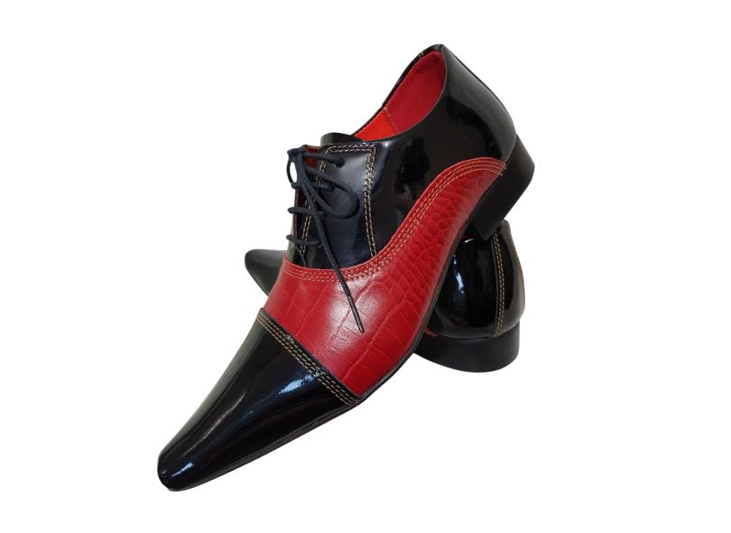 Sapato Masculino Italiano em Couro Verniz com Jacaré Ref: 708
