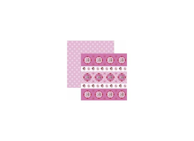 Papel Scrapbook Dupla Face 30,5x30,5cm Hora do Chá com a Minnie 1 Forminhas e Toppers SDFD-127 - Toke e Crie