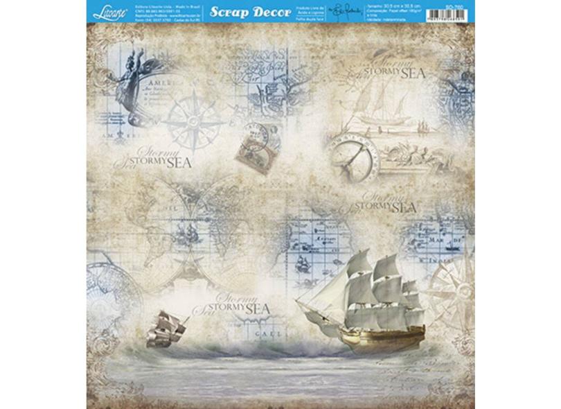 Papel Scrapbook SD-760 30,5x30,5cm Navio Vintage Litoarte