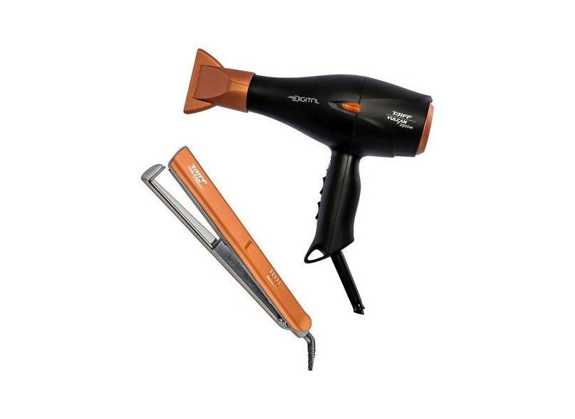 Kit Secador De Cabelo Digital 2500w + Prancha Taiff Vulcan Progress 250ºC Bivolt