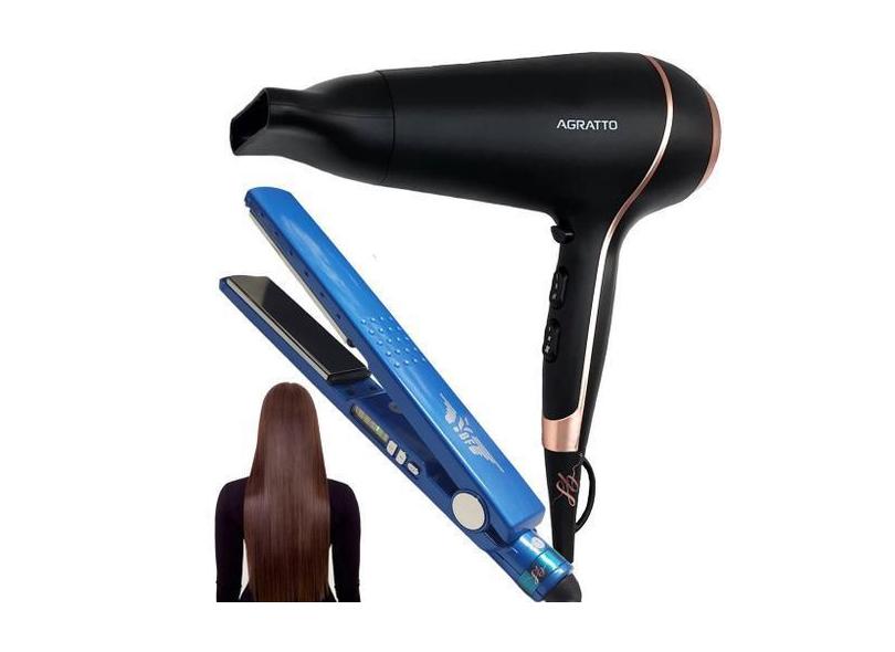 O menor preço encontrado no Brasil para Kit Secador De Cabelos Dc Potente E Chapinha Progressiva Pro - Agratto atualmente é R$ 243,44.