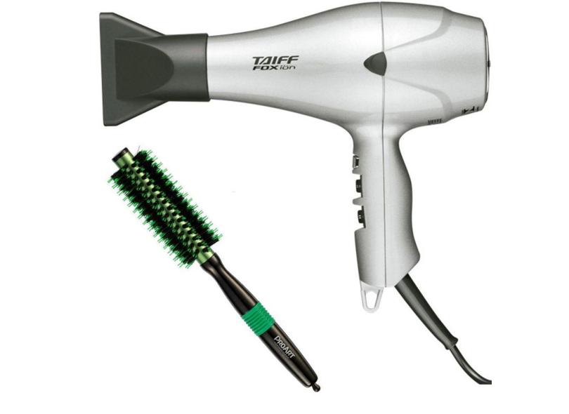 Kit - Secador Fox Ion Prata 2000W 127V - Escova Proart Pro Verde 15Mm Epm01