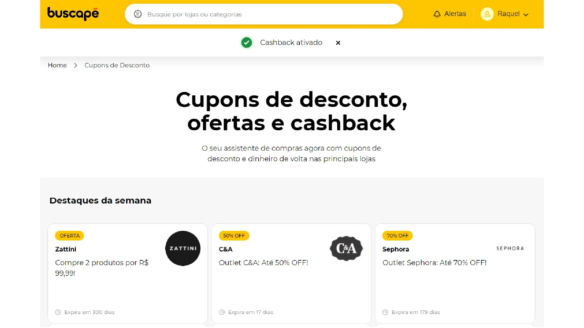 E, na nossa Cuponeria, você encontra cupons não apenas para compra de produtos em lojas como Amazon, Casas Bahia e Magazine Luiza, como também descontos em serviços como iFood, por exemplo. Ou seja, fazemos tudo para ser o melhor assistente de compras e garantir que você economize nos mais diferentes tipos de compra aqui na internet. Ah, e o mais legal: alguns cupons de desconto também podem ser combinados com dinheiro de volta em algumas lojas, sabia? Clique aqui para acessar esse espaço agora mesmo!