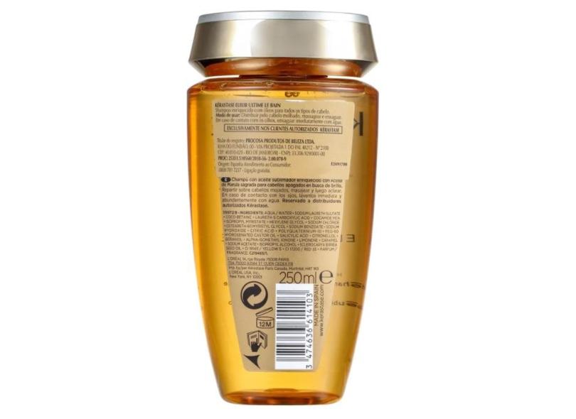 A fórmula do shampoo Kérastase Elixir Ultime é composta por cinco óleos, sendo o óleo de marula responsável por fornecer proteção antioxidante e nutrição intensa.