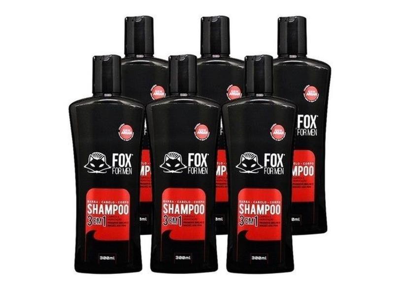 Shampoo Fox For Men 3 em 1 Cabelo e Barba 300ml Caixa Com 6 Unidades