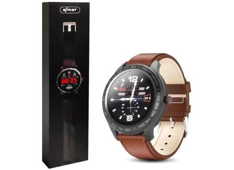 Relógio Smartwatch Bt Pulseira Couro Marron Knup Kp-sw9