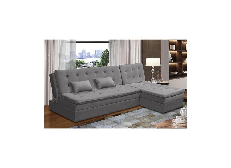 Sofá Cama 1 E 2 Lugares Natalia Suede Cinza Madelina Decor