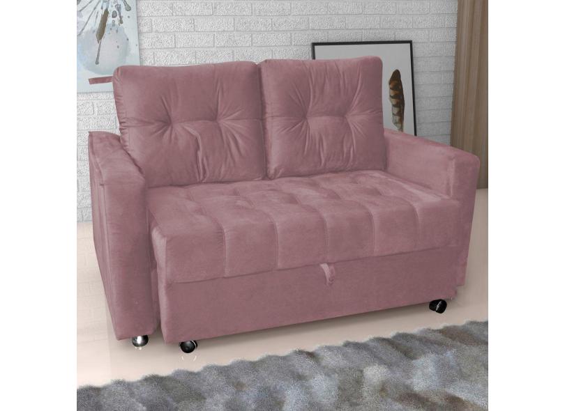 Sofá Cama 2 Lugares Yago Veludo Turkey Rosa