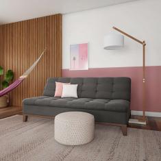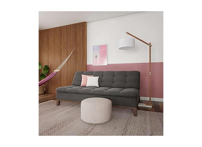Sofá-Cama 3 Lugares Casal Premium We Can Do ItBase e Pés de Madeira Suede Cinza