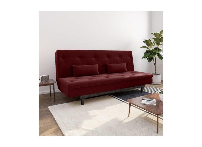 Sofá Cama 3 Lugares em Suede Tokio Yescasa Marsala/Tabaco