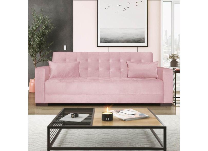 Sofá Cama 3 Lugares Jobim Suede Rosa Bebê