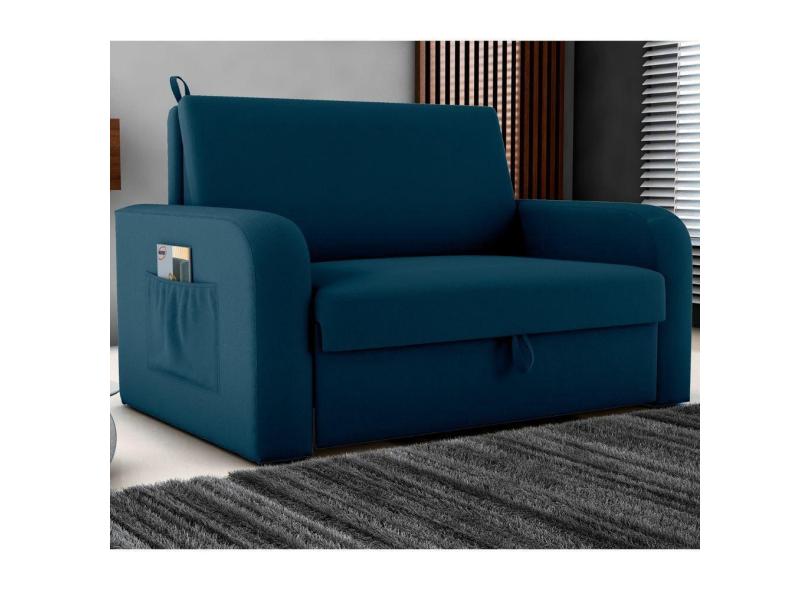 Sofá Cama Com Baú 2 Lugares Raheny Veludo Maserati Azul