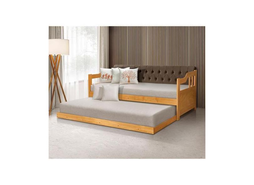 Sofá Cama Dublin Estofado Capitonê Veludo Marrom Madeira Maciça Com Ca