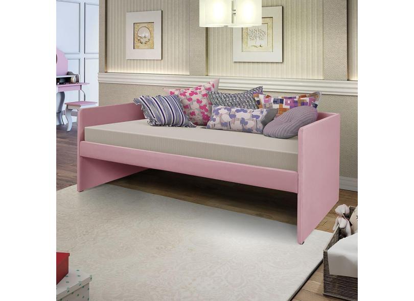 Sofá Cama em Madeira Jade Vintage com Resvestimento de Tecido Veludo Rosa