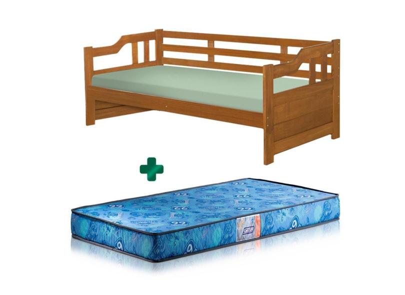 Sofá Cama Madeira Maciça Solteiro Imbuia Shop JM Com Colchão Gazin