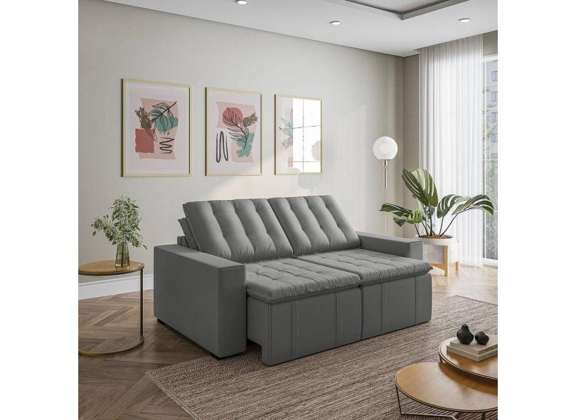 Sofá Cama Retrátil e Reclinável 3 Lugares 200cm em Veludo com Molas e Braço Reto Palmeira Cabecasa M Cinza