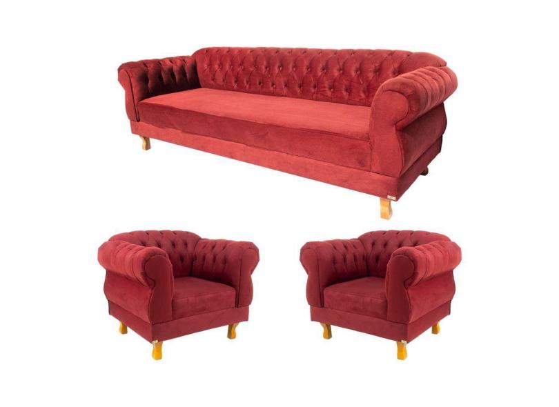 O menor preço encontrado no Brasil para 1 Sofá 1,80cm + 2 Poltronas Chesterfield Elisabeth Suede Bordo atualmente é R$ 3.560,00.