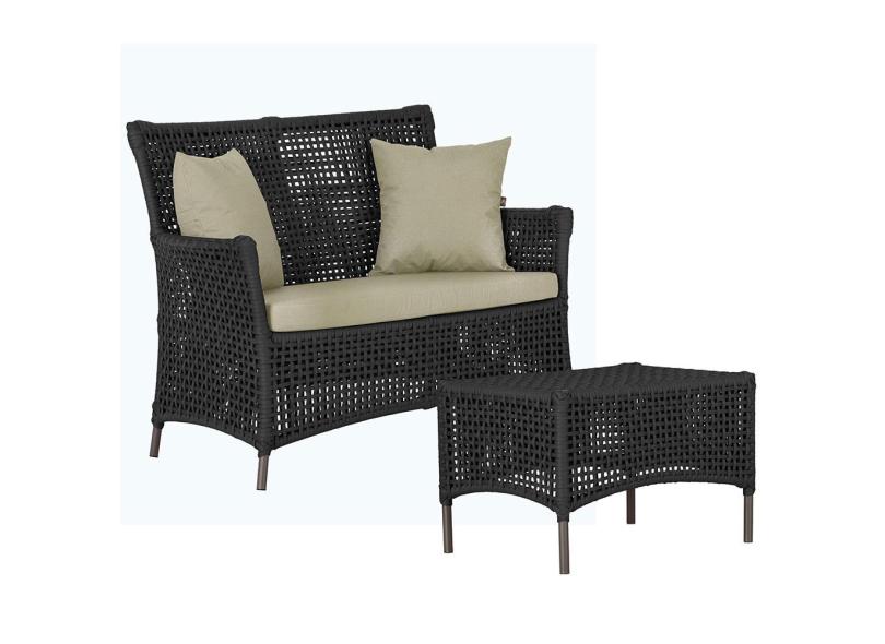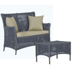 1 Sofá Área e Mesa Igapó Alumínio Pintura Marrom Corda Náutica Estofado Impermeável Almofada 7 Trama