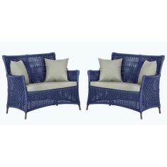 O menor preço encontrado no Brasil para 2 Sofás área Externa Igapó Alumínio Marrom Corda Náutica E3 Azul atualmente é R$ 5.530,62.