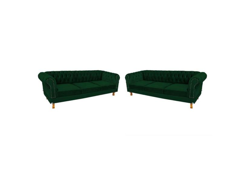 O menor preço encontrado no Brasil para 2 Sofás Chesterfield Capitone Duque Suede Verde Musgo 1,80 atualmente é R$ 3.600,00.