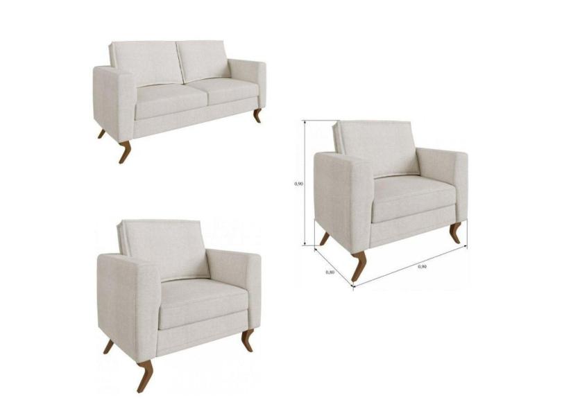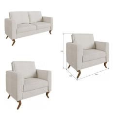 Conjunto de Sofá 2 lugares e 2 Poltronas Caprice Casa de Pedra Estofados Cru