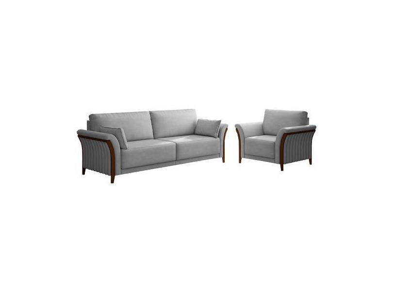 Conjunto Decorativo Poltrona E Sofá 222cm Market Veludo Cinza G45 - Gr