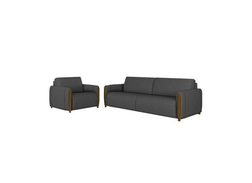 Conjunto Decorativo Poltrona E Sofá 223cm Maceió Linho Chumbo G45 - Gr