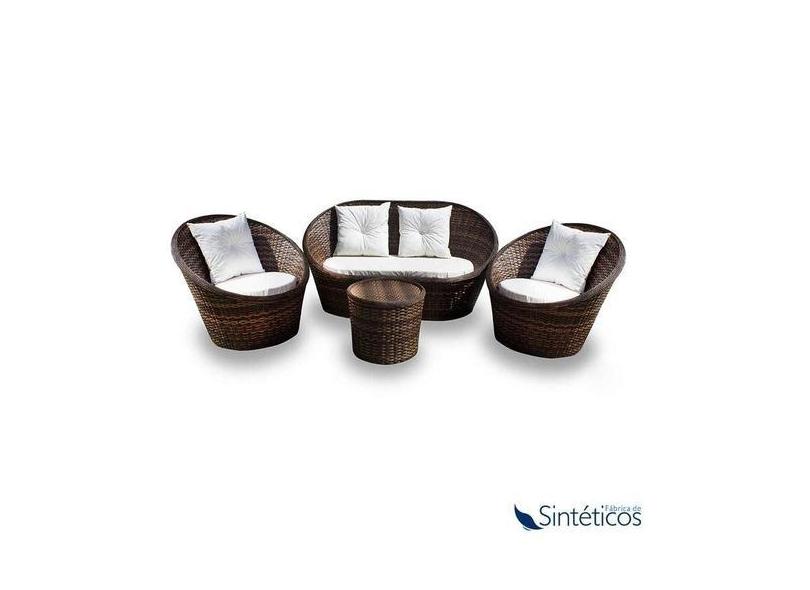 Conjunto Ibiza - 2 Poltronas + 1 Sofá + 1 Mesa Redonda - Lba Sintetico