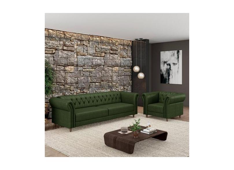 O menor preço encontrado no Brasil para Conjunto Sala de Estar 1 Sofá Living 200cm e 1 Poltrona Stanford Chest atualmente é R$ 10.663,91.