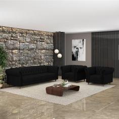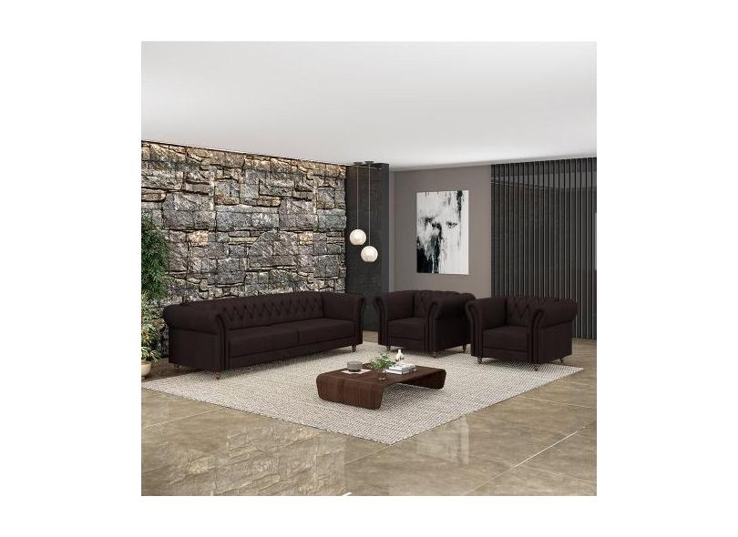 Conjunto Sala De Estar 1 Sofá Living 200cm E 2 Poltronas Stanford Ches