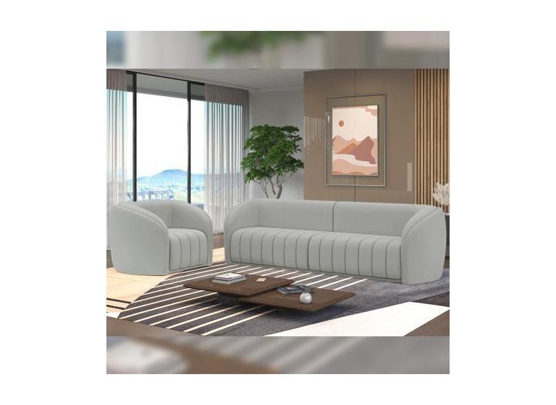 Conjunto Sala de Estar Sofá 252cm 3 Lugares e Poltrona Adam Veludo Cin