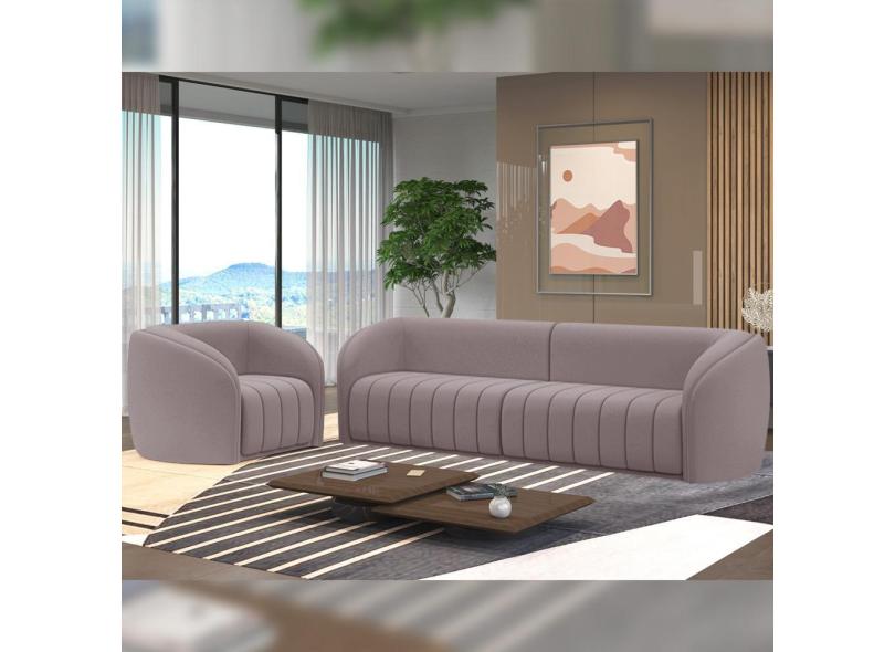 Conjunto Sala de Estar Sofá 252cm 3 Lugares e Poltrona Adam Veludo Rosê G45 - Gran Belo