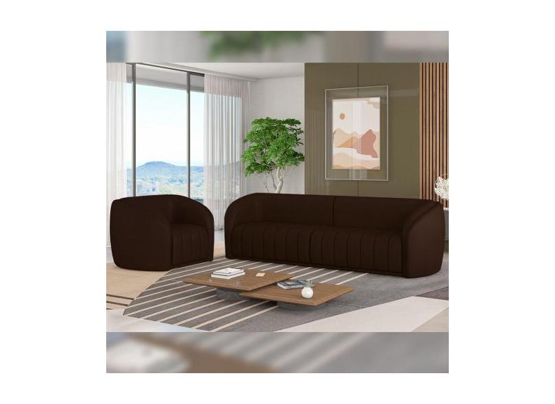 Conjunto Sala De Estar Sofá 292cm 4 Lugares E Poltrona Adam Pu Marrom
