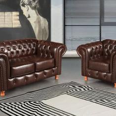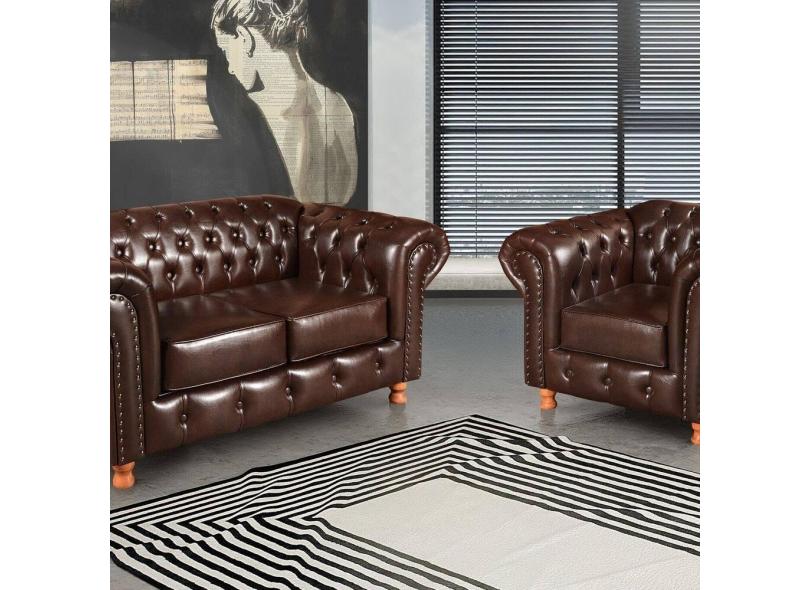 Conjunto Sofá 2 Lugares e Poltrona Luis XV Chesterfield Vintage Café