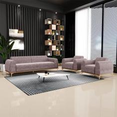 Conjunto Sofá 3 Lugares E Poltrona Base De Madeira Euro 230 Cm Veludo